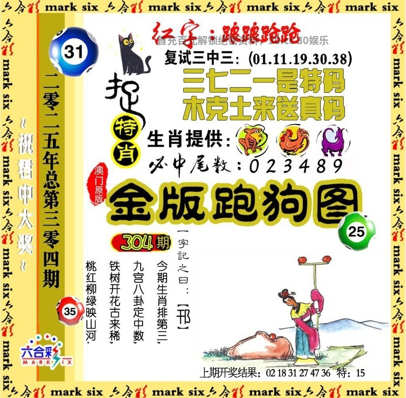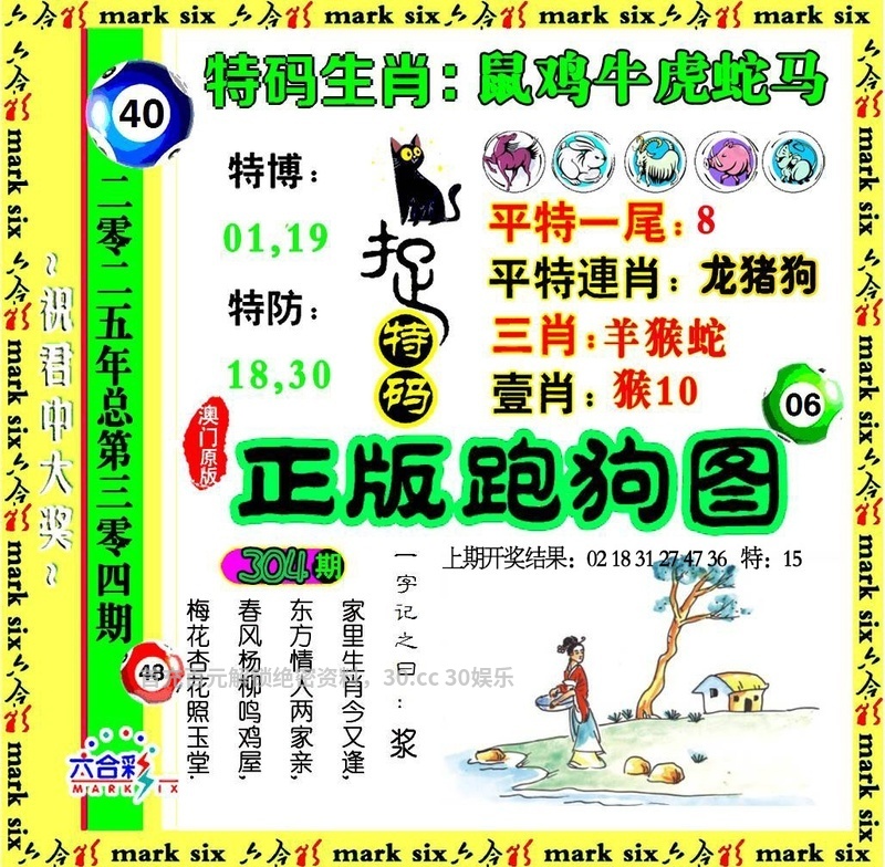 | 304期 | 猴 | 绿双 | 2 | 开:马48中 |