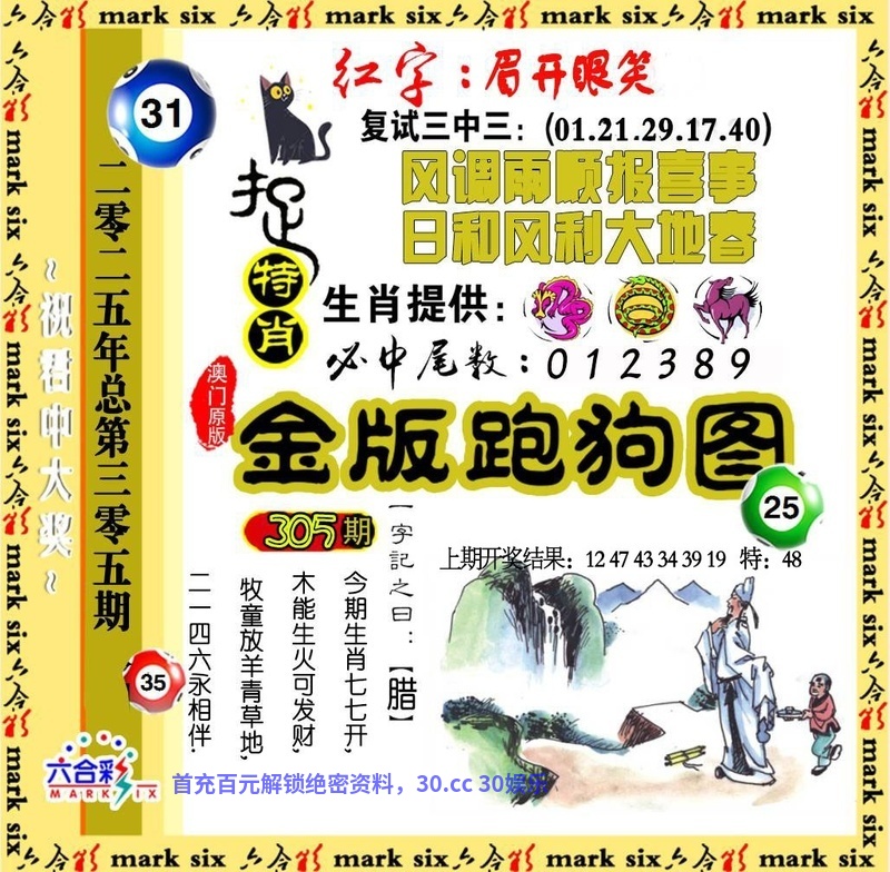 | 306期 | 马 | 蓝双 | 4 | 开:牛17中 |