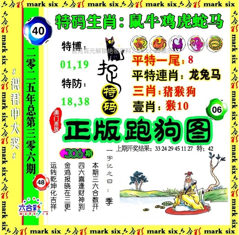| 305期九肖 | 鸡龙猪马狗羊鼠牛蛇 | 鼠42中 |